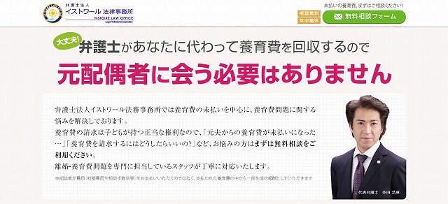 弁護士への相談料は、一般的に1時間あたり5,000円~10,000円が相場だといわれます。初回に限り無料の事務所もあるようですが、相談だけで10,000円もかかるとなれば経済的に苦しいシングルマザーにとって負担が大きいと思います。弁護士法人イストワール法律事務所では、養育費問題で悩むお母さんの事情を考慮し、養育費問題の相談は全て無料です。養育費を払わない元夫からきっちり回収してくれます。